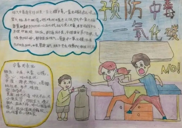 學生們通過手抄報的方式,積極宣傳預防一氧化碳中毒的知識,爭做安全小衛士。
