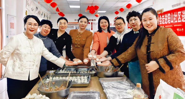 大家提前備好餡料,現場有的揉面,有的拌餡,有的搟皮,分工明確默契配合,一起將噓寒問暖包進一個個餃子里,讓這份關愛更具煙火氣息。